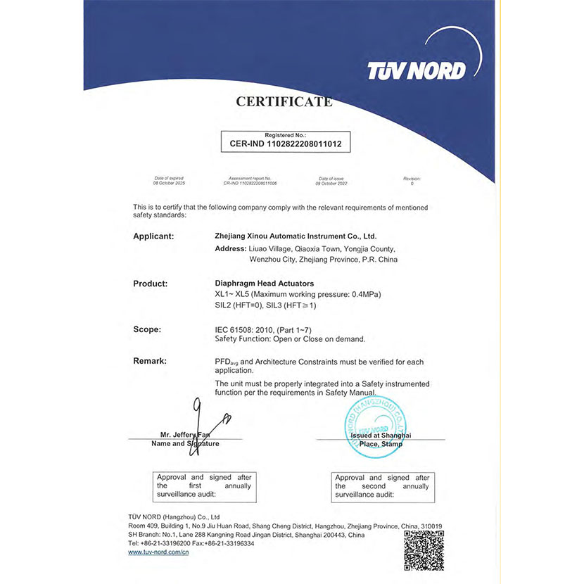 薄膜型執行器 SIL證書 1